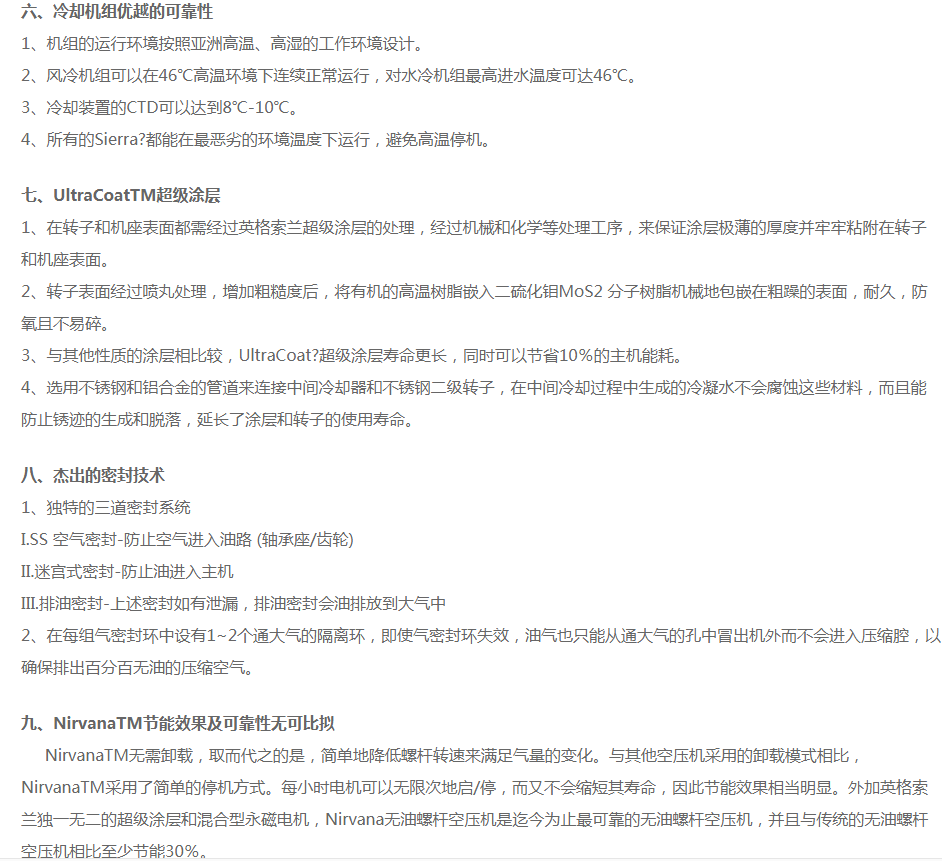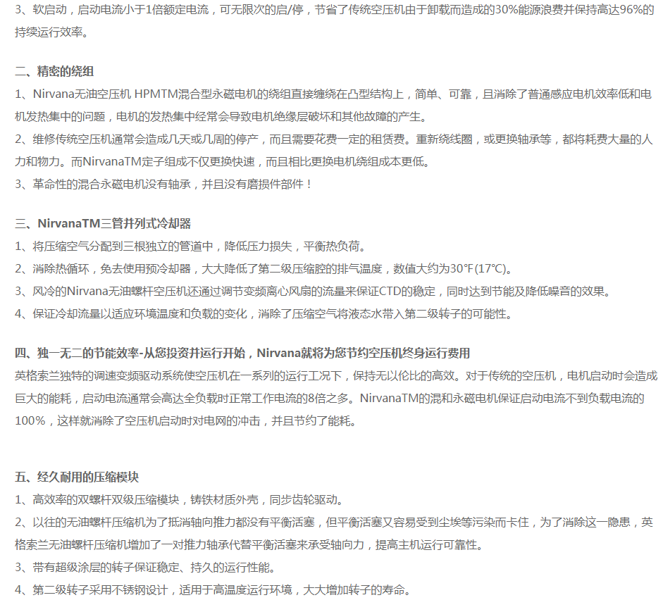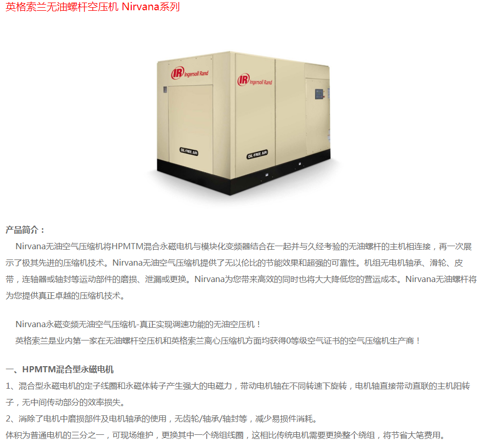 英格索蘭無油螺桿空壓機Nirvana系列