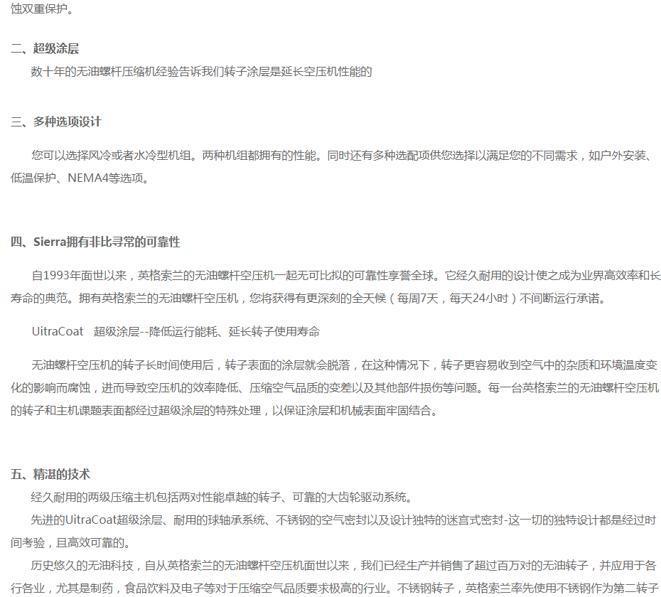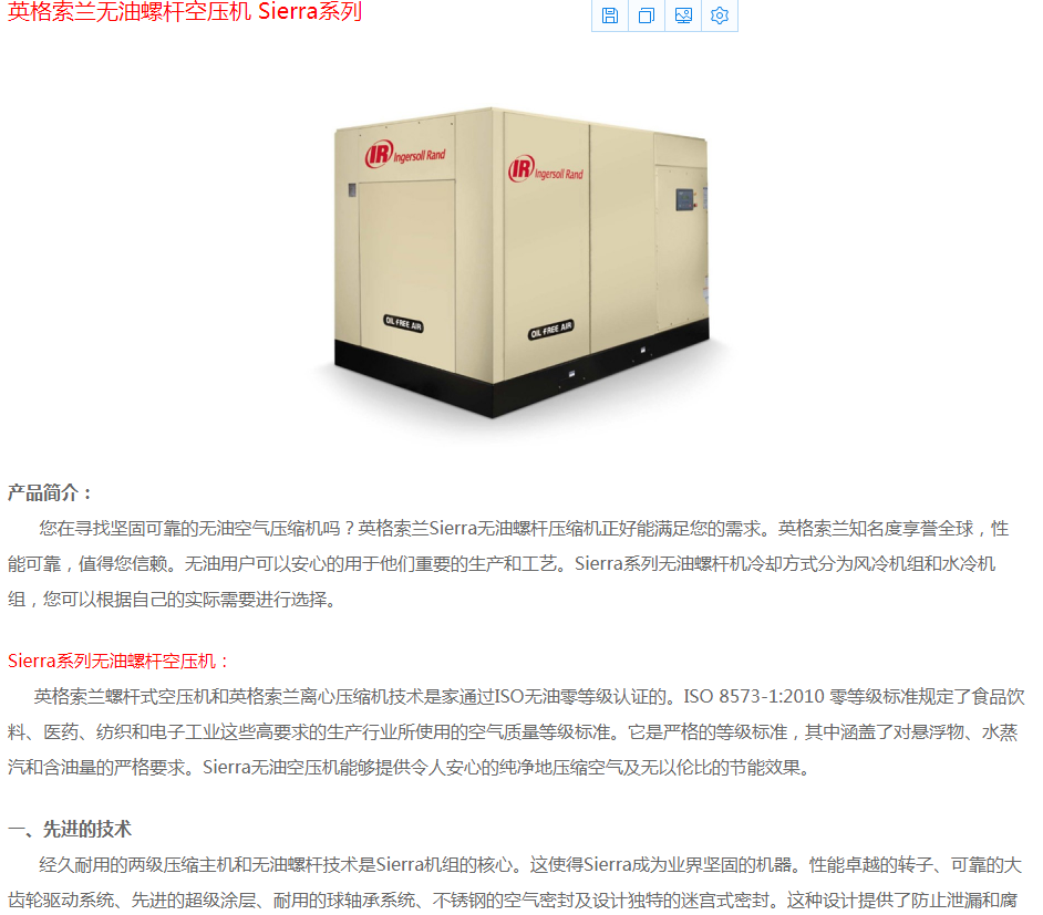 英格索蘭無油空壓機(jī)Sierra系列